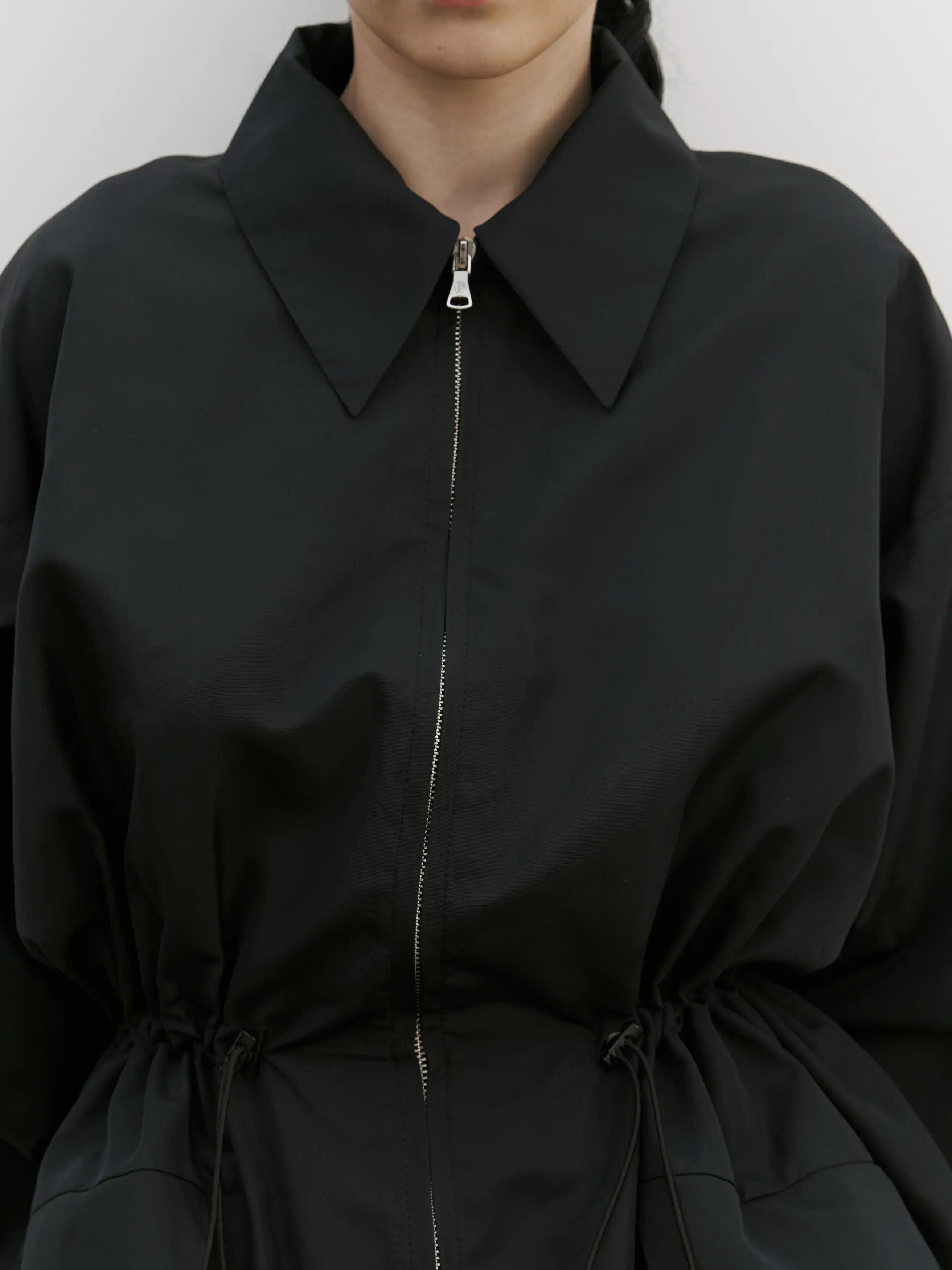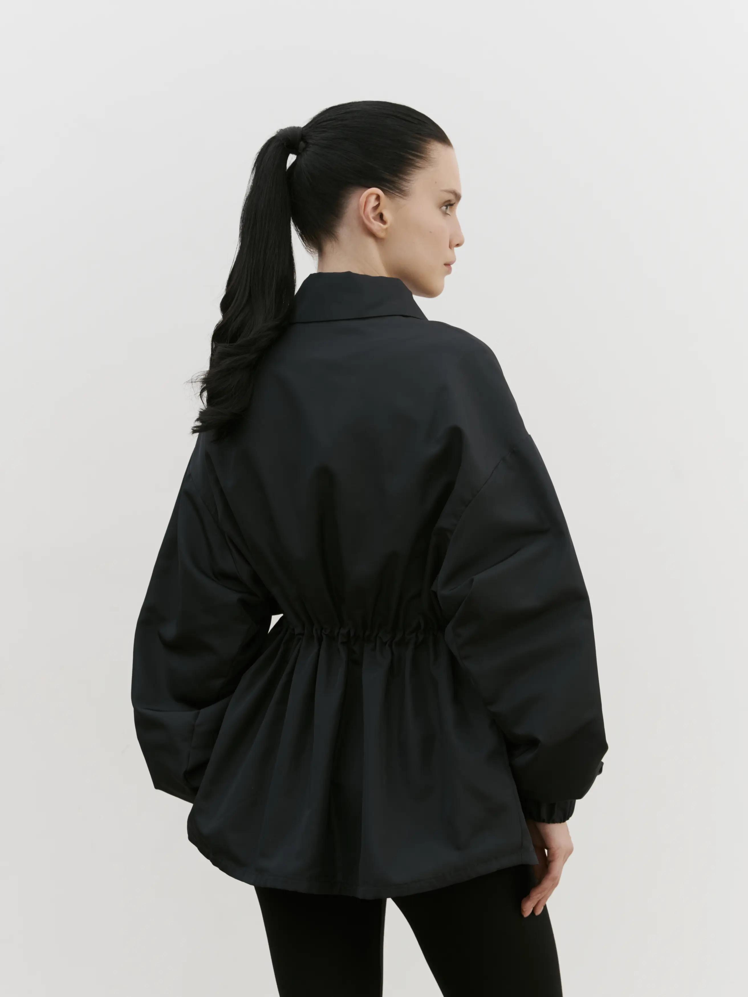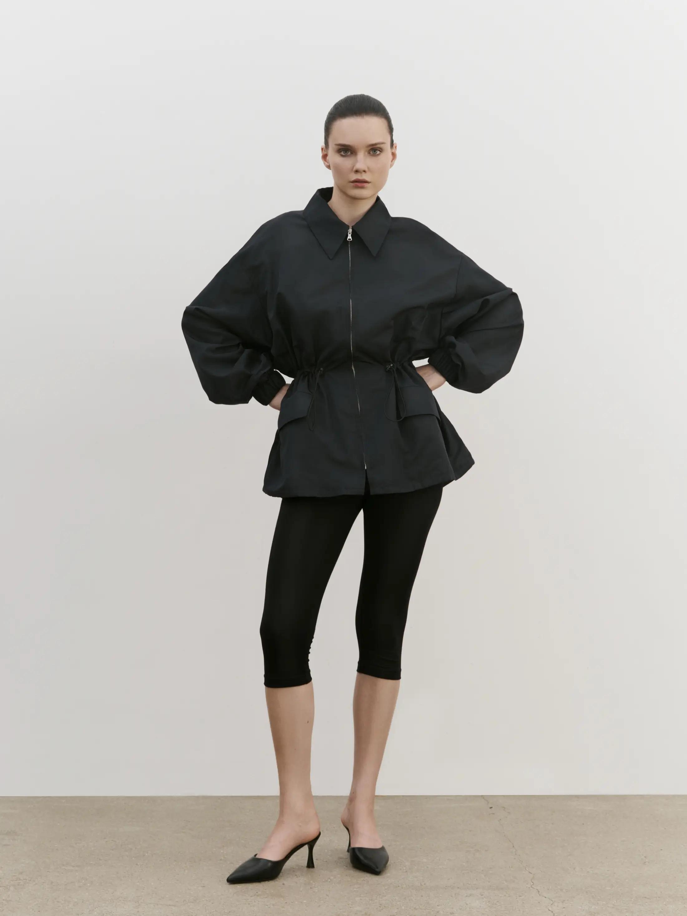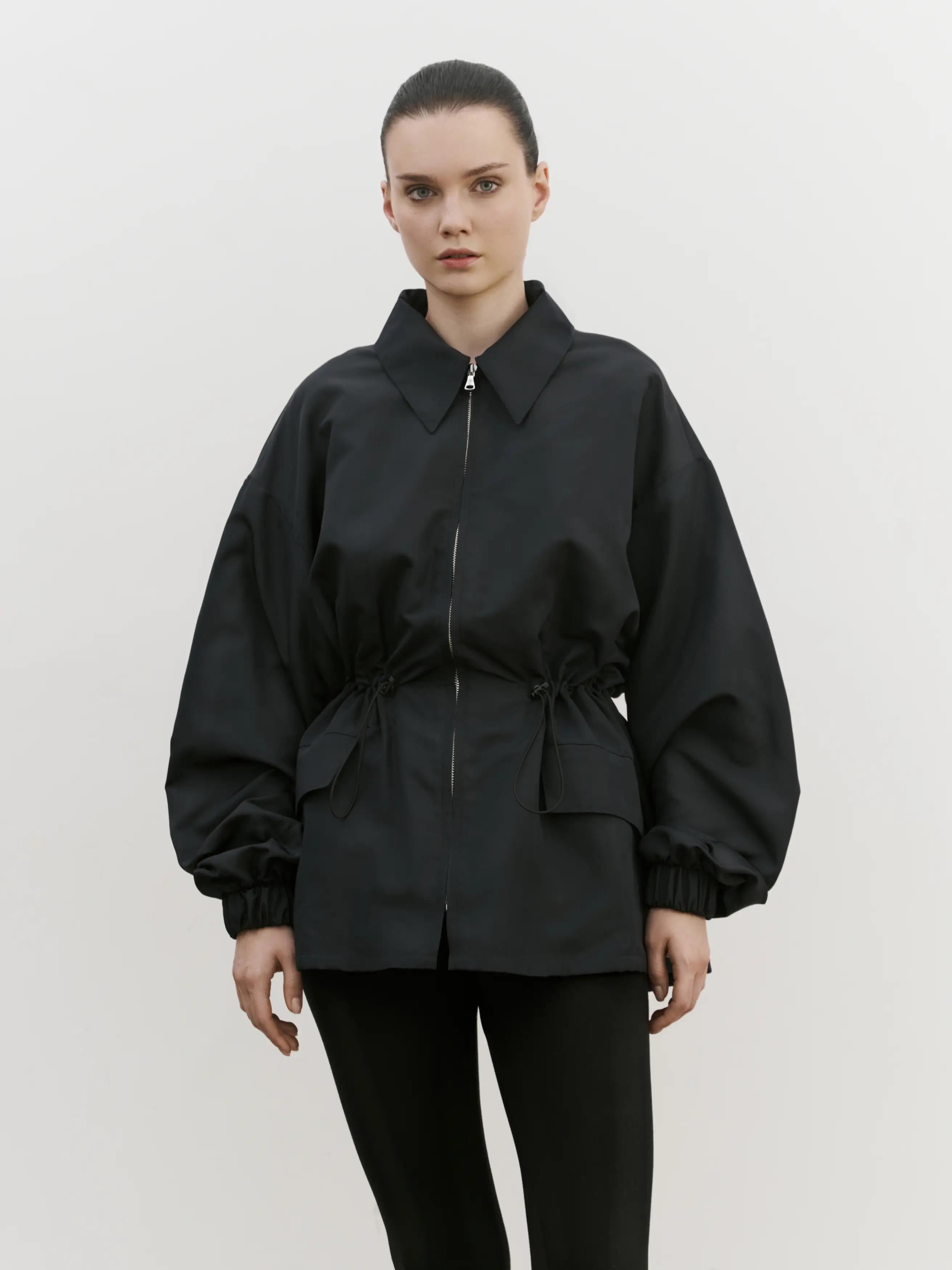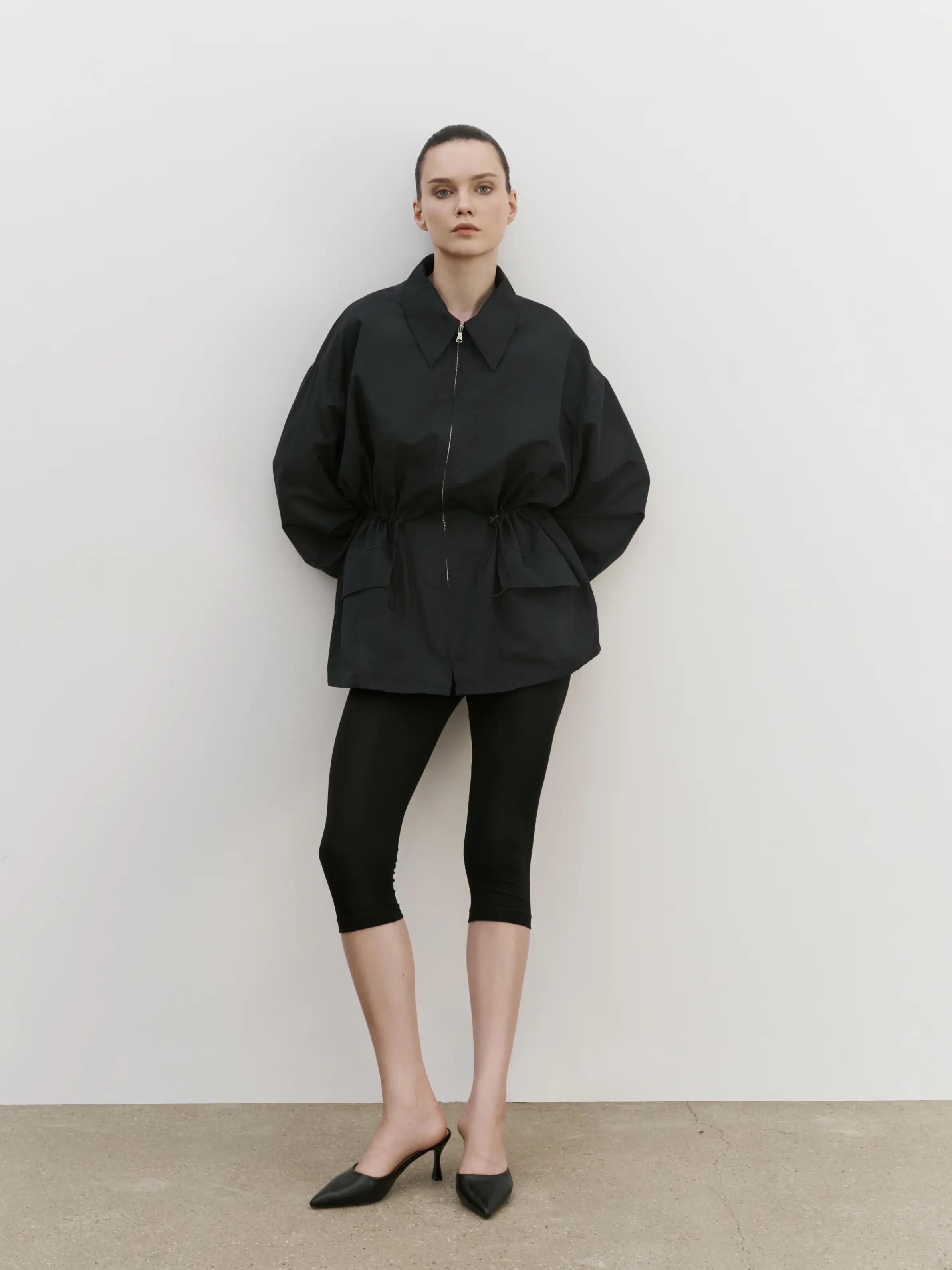 Куртка свободного кроя на молнии в размере one size, регулируемая кулиска в талии, спущенная линия плеча.