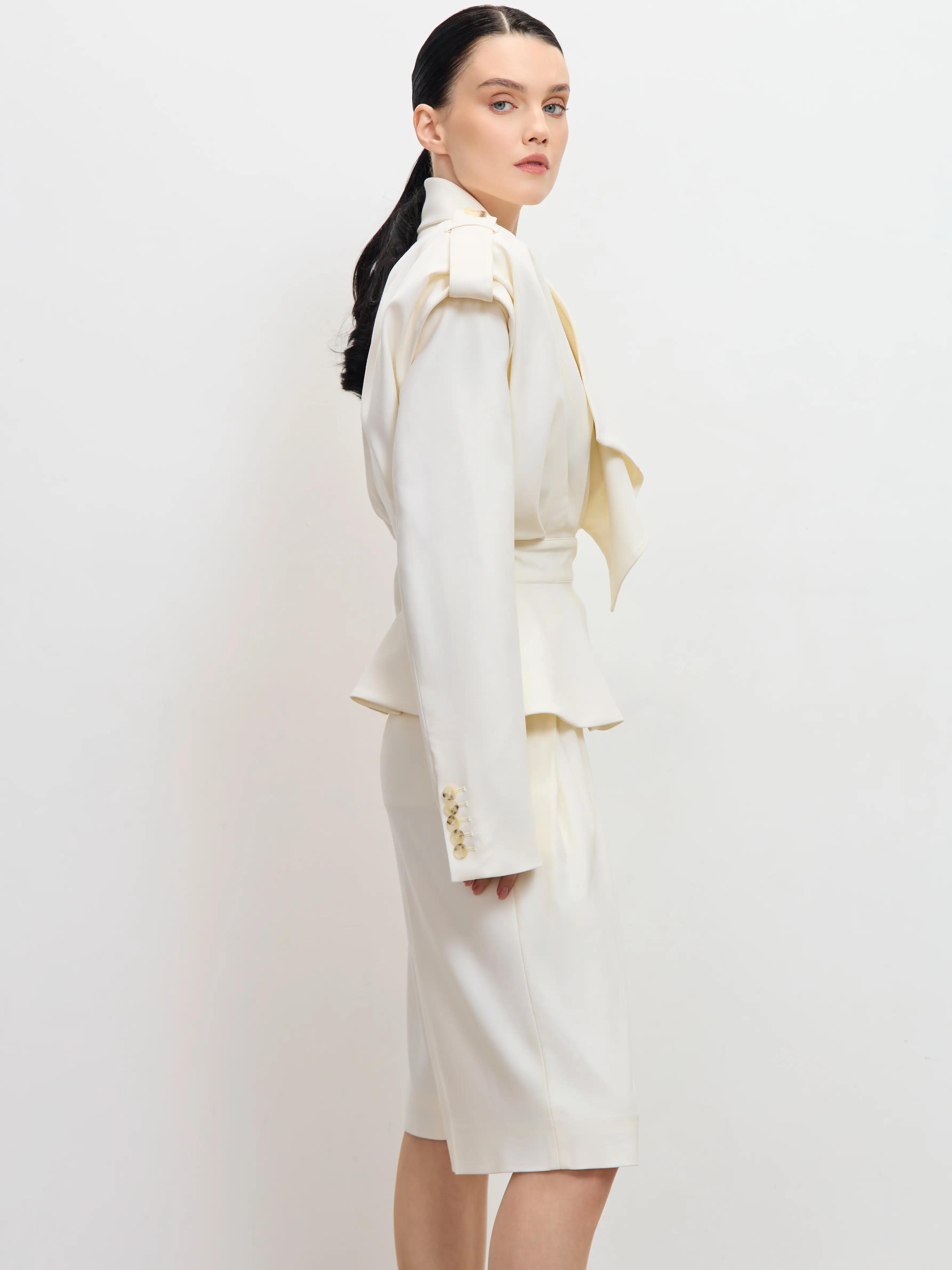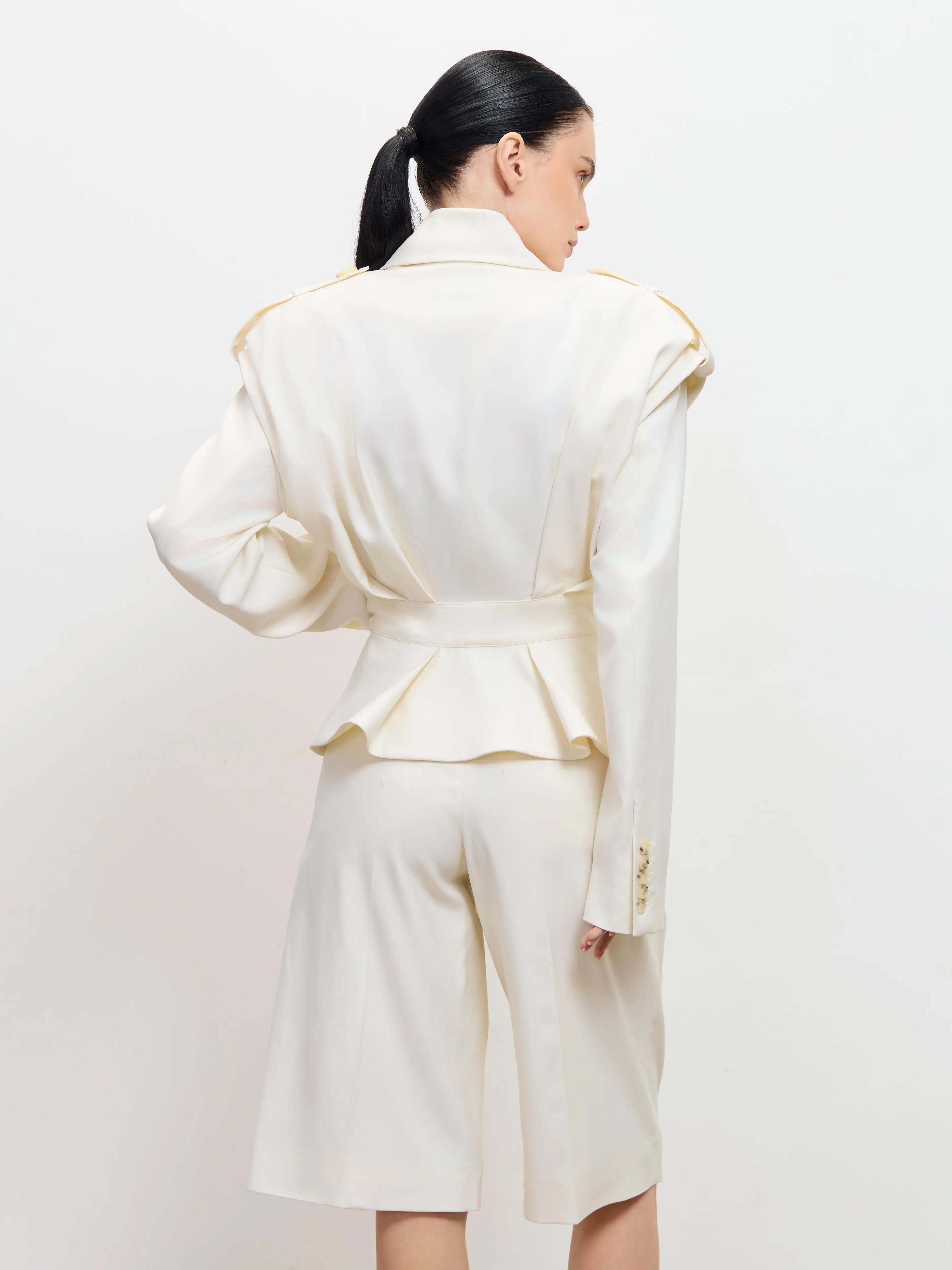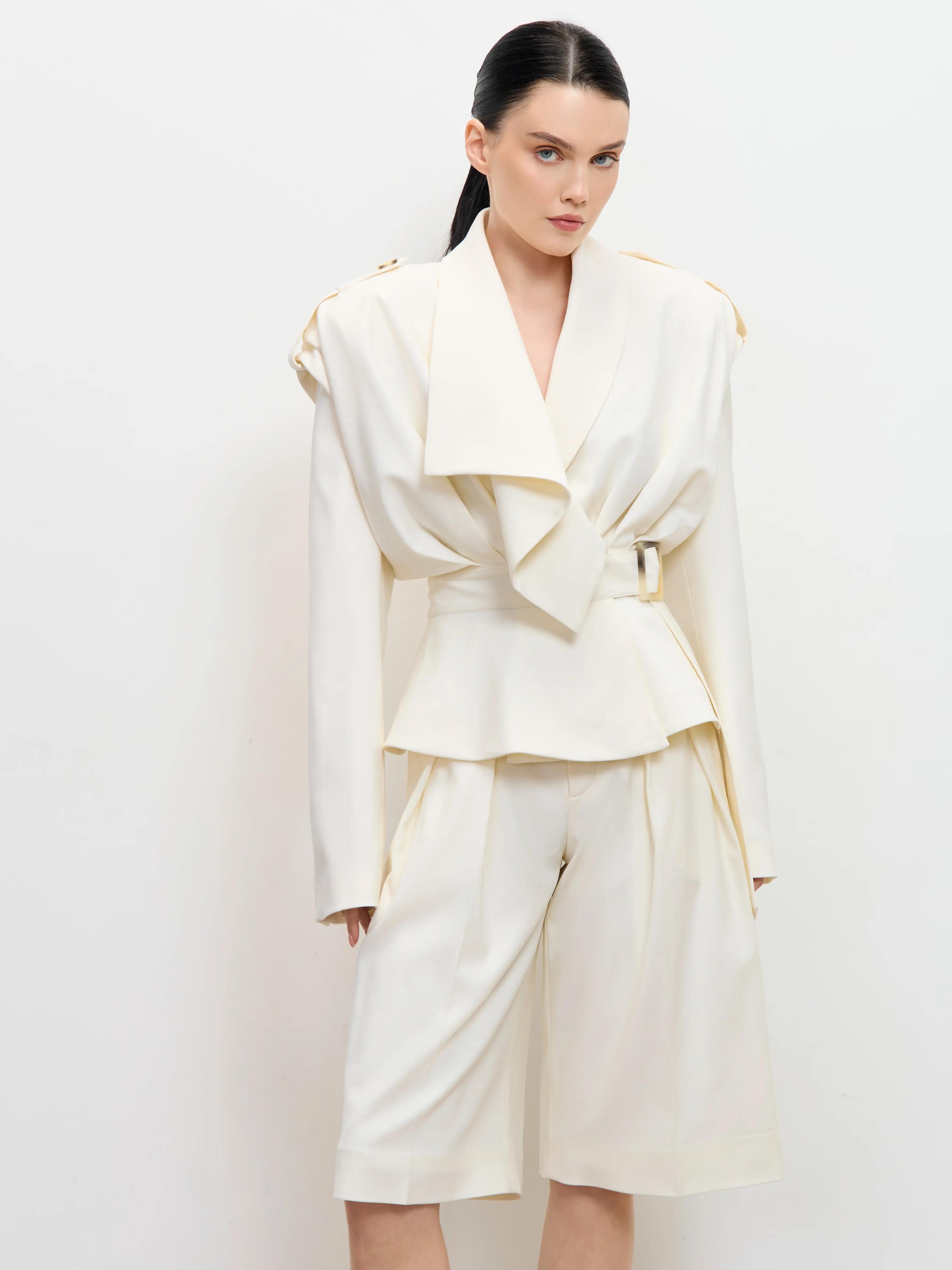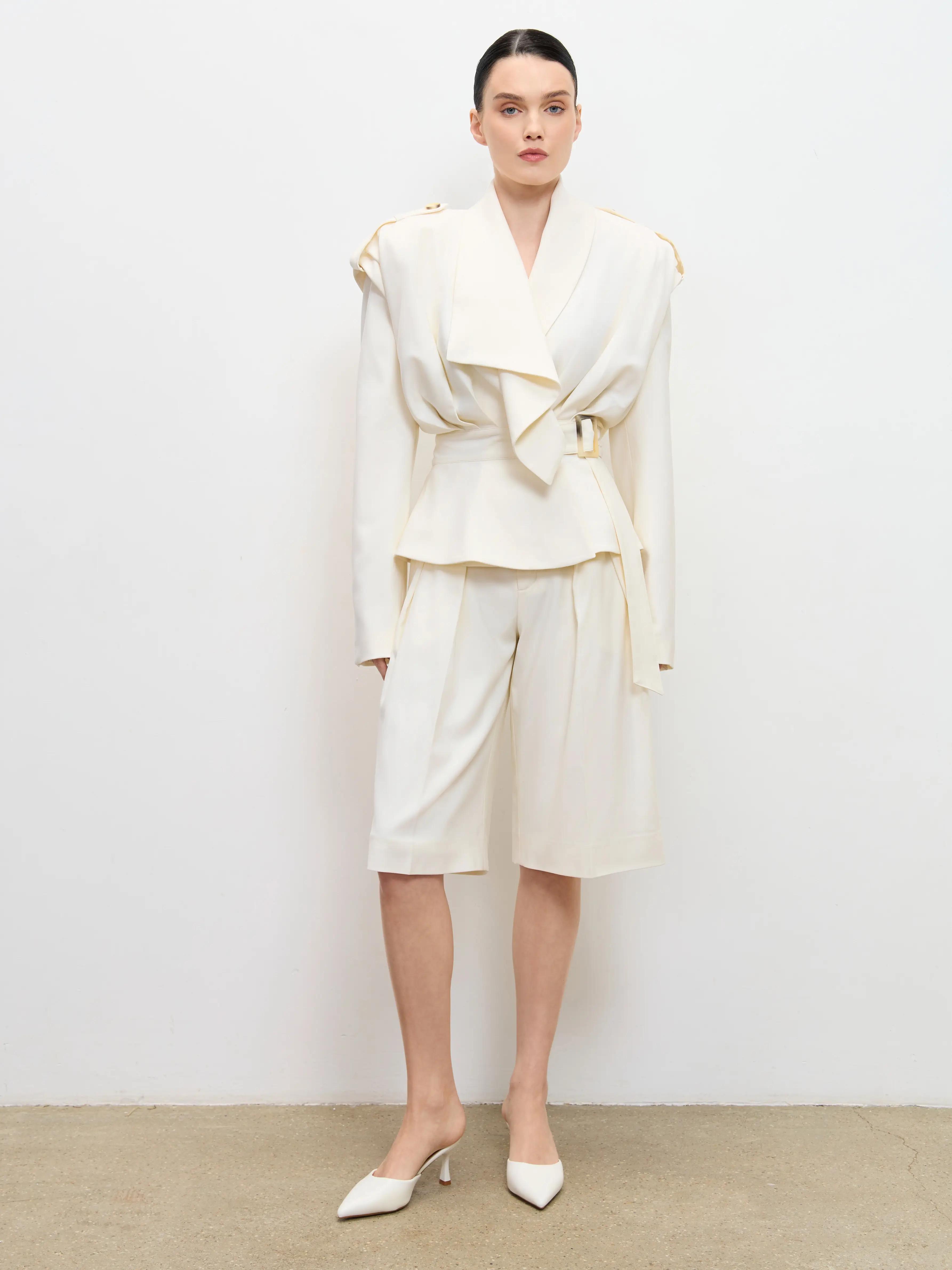 Бермуды со складками, стрелками и удобными боковыми карманами- в теплый сезон идеальная альтернатива брюкам в базовом гардеробе. Для total look можно сочетать с жакетом из такого же материала, представленном на сайте.