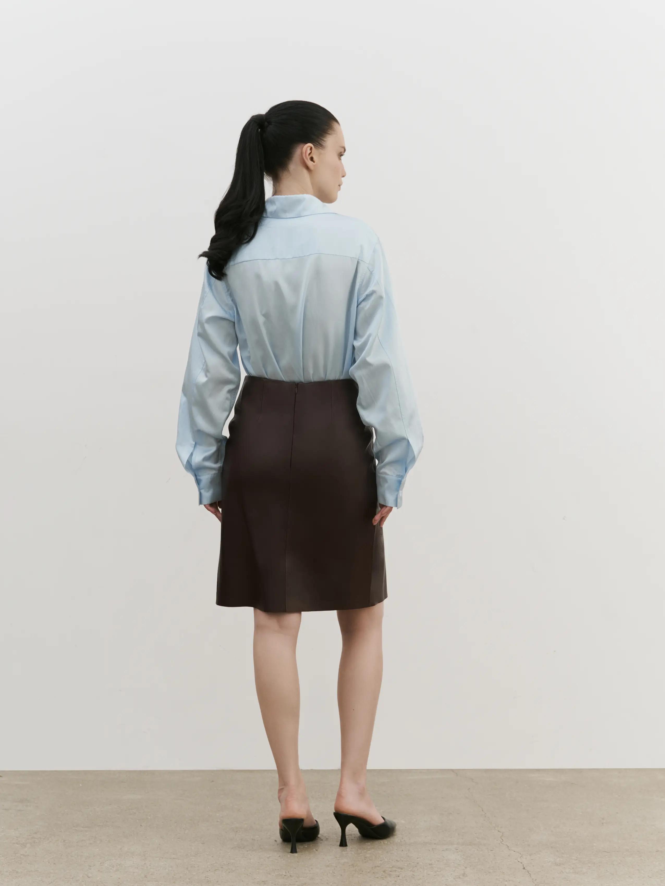 Кожаная юбка с разрезом спереди, из мягкой итальянской телячьей кожи, посадка на бедрах.