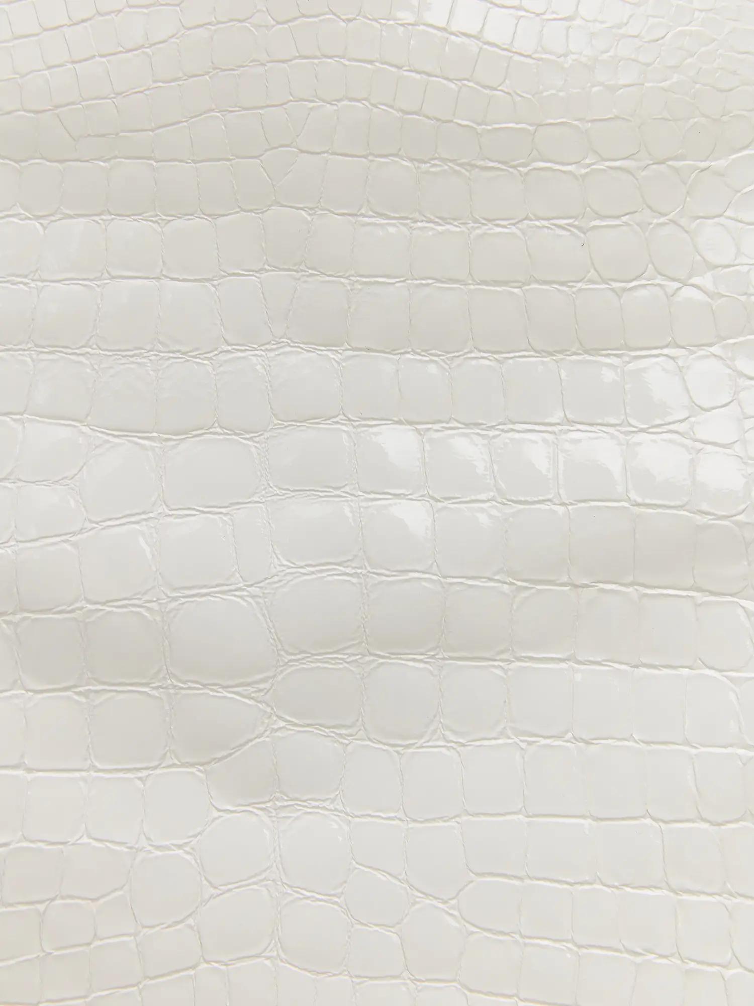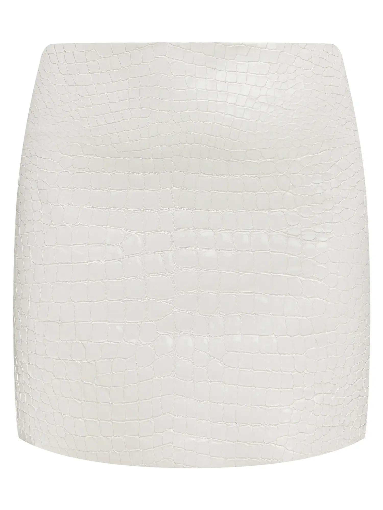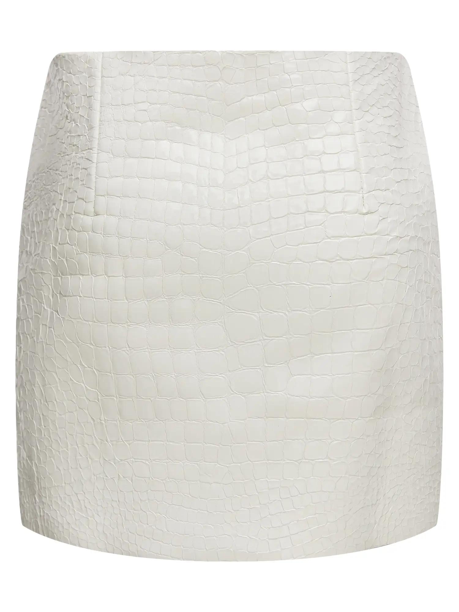 Юбка мини с посадкой на бедрах, выполнена из натуральной лаковой итальянской кожи с теснением под крокодила.